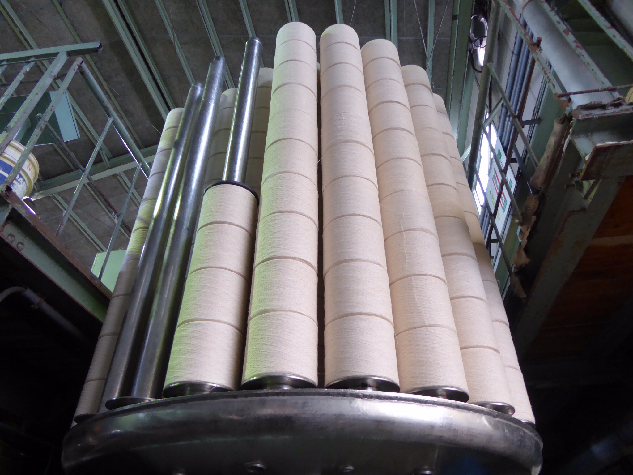 岡山県倉敷の織元工場でオリジナル素材として織っています。糸を染めた後、ストライプ柄に織り上げますが縦糸横糸で互いの色がどう響くかは織り上げてみないとわかりません。そんな難しさもオリジナルで作ることの楽しさです。限定素材となりますのでシーズンで色やストライプ柄も変わります。
