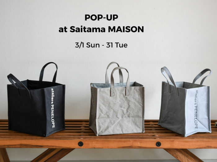 3月1日(日)〜3月31日(火)の期間、埼玉県川越市のセレクトショップMAISONにて「ateliers PENELOPE」の商品を期間限定で展開いたします。