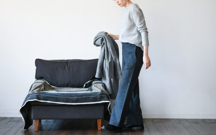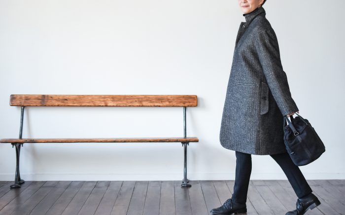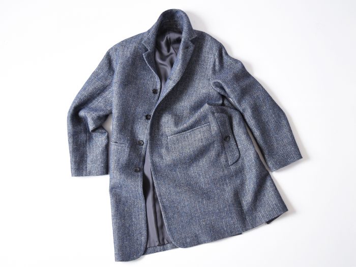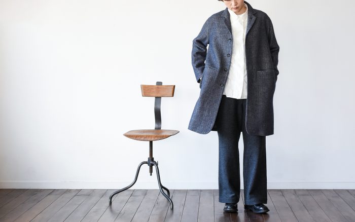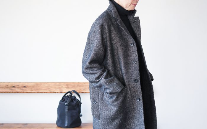 クラシックなテーラードスタイルのコート、Treno(トレノ)は上質な羊毛×リネンを贅沢に織り上げた国産ヘリンボーン素材を使用。軽やかに羽織れるのに暖かく、レイヤードを工夫してシーズン中も長く着用いただけるデザインです。裏地は肌触りの良いフランス製のキュプラガルゼで仕立て、着脱を滑らかにしています。ラペルホールつきの小さめの襟を立てて、ハイネックと合わせるのもおすすめです。